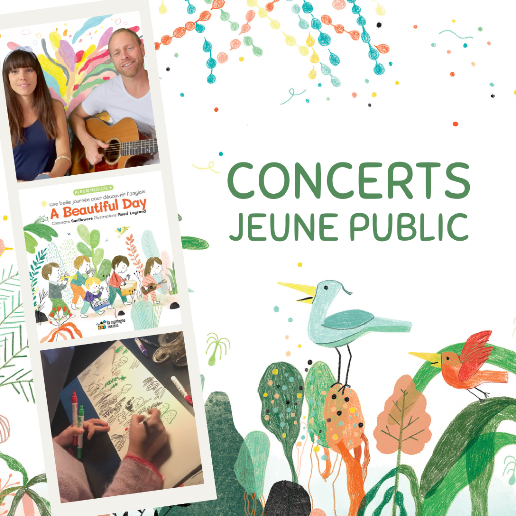 Pour les trois autres dates ci-dessous, les Sunflowers seront accompagnés de l’illustratrice Maud Legrand pour un concert dessiné (illustrations de l’album réalisées en direct):